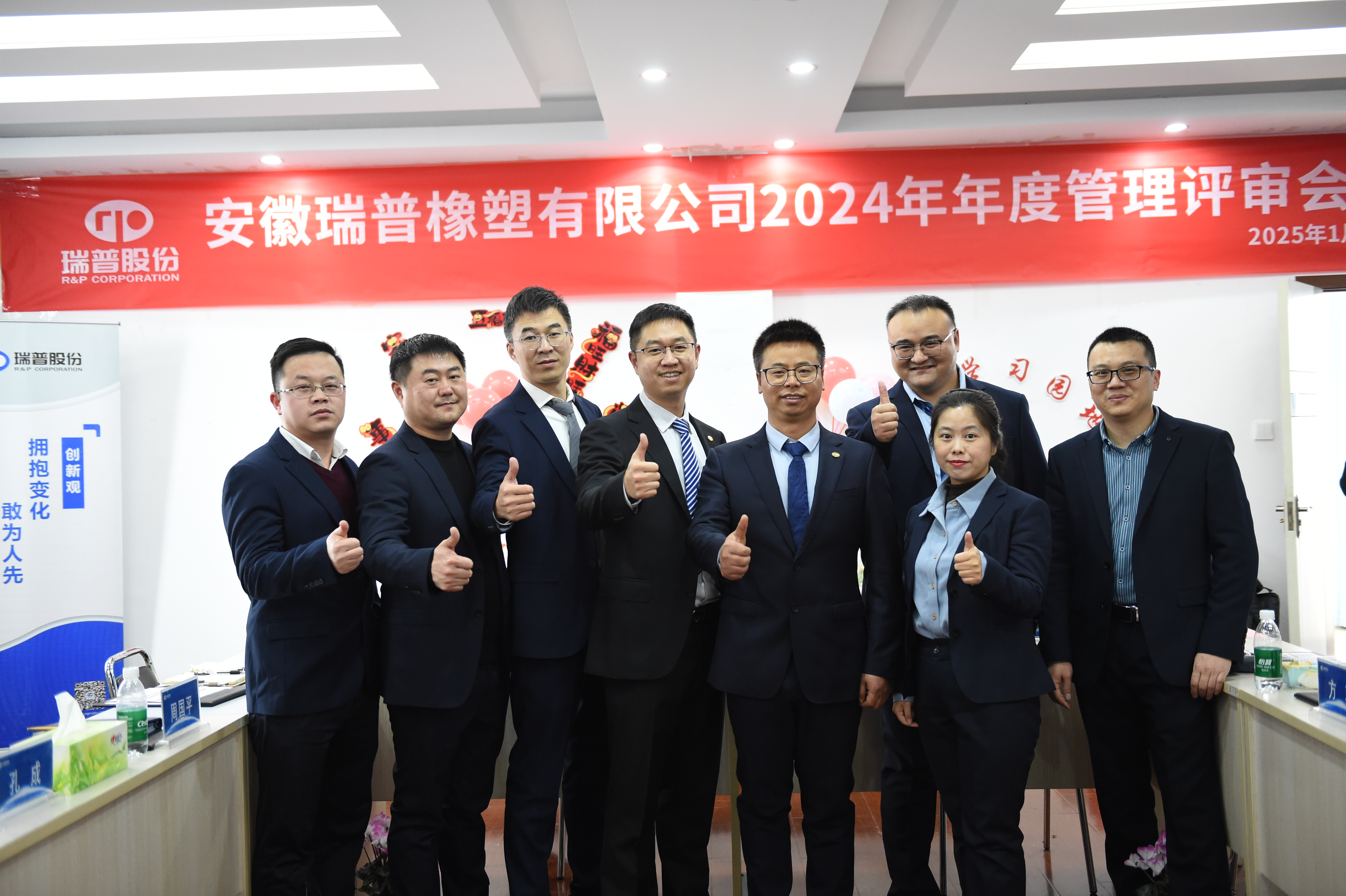 安徽瑞普橡塑有限公司于2025年1月24日上午8時,在寧國公司三樓會議室舉行2024年度管理評審會議。本次會議由集團公司質量部長祝珊珊擔任主持,公司高層管理人員以及各職能部門、子公司負責人共計三十余人出席會議。各職能部門、子公司負責人就2024年度的工作情況進行匯報,并對2025年的工作計劃及提升策略進行規劃。