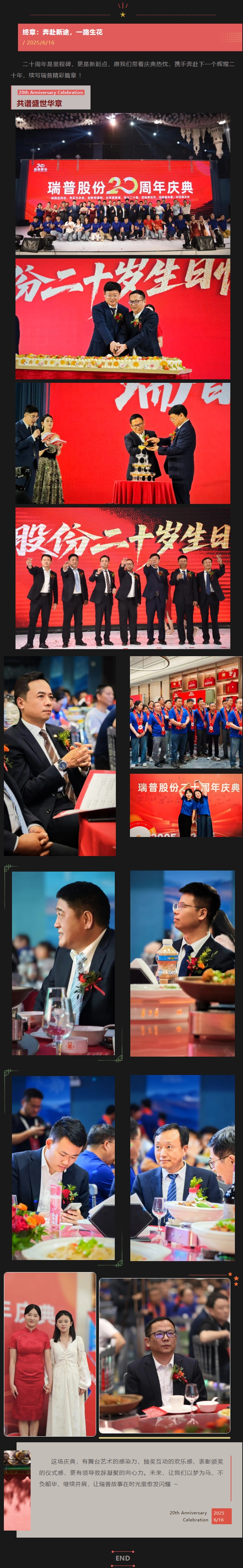 二十載櫛風沐雨,二十載砥礪前行。值此安徽瑞普橡塑科技股份有限公司成立二十周年之際,我們滿懷感恩與喜悅,誠邀您撥冗出席二十周年慶典活動,共同見證這一榮耀時刻,共敘情誼,共謀未來!